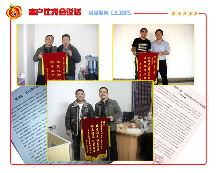 大部分的優(yōu)化公司采用的是代碼優(yōu)化或者頁面優(yōu)化,純技術(shù)手段,導(dǎo)致關(guān)鍵詞有限,排名不穩(wěn)定。千度SEO采用的是東莞seo優(yōu)化各種方法中最先進(jìn)的整站優(yōu)化,關(guān)鍵詞不限,排名穩(wěn)定。了解更多請(qǐng)撥打我們的免費(fèi)服務(wù)電話:400-690-7710