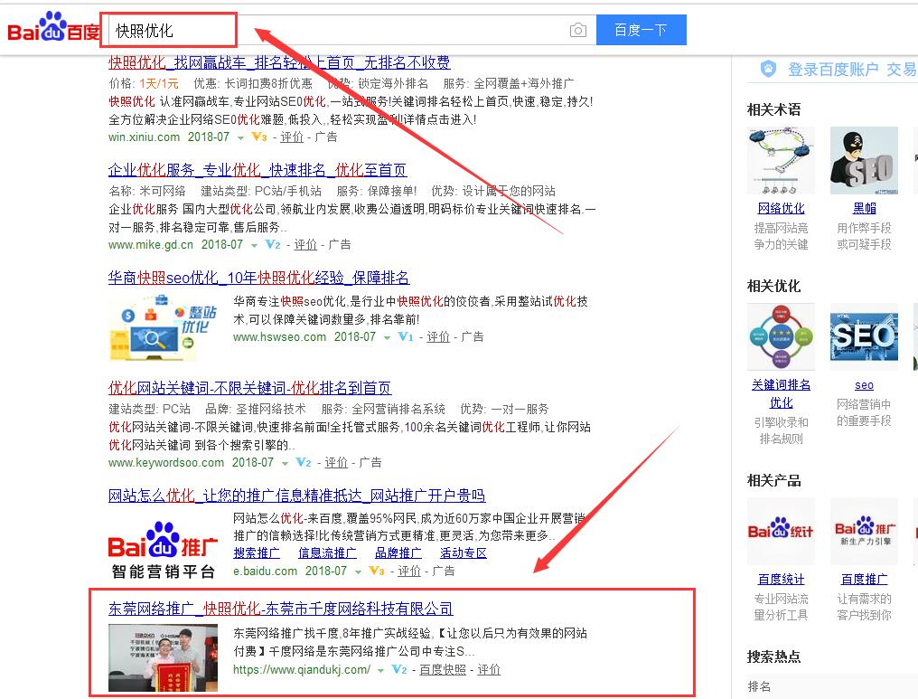 2、這些案例都是有客戶反饋的:客戶的見證,或者反饋,比如說給到感謝信,給到感謝錦旗,還有一種是客戶愿意合影的,愿意答應東莞網絡推廣公司,跟公司業(yè)務一起拍照做宣傳的,肯定是有效果的,沒效果,沒人搭理你的,不把業(yè)務員趕出來算好的了。所以只曬合同,沒有客戶照片啥的,這樣的公司你要多考察下。另外看下網絡公司自己的排名怎樣,快照優(yōu)化這個關鍵詞,千度網絡已經連續(xù)4年穩(wěn)定在百度首頁了。