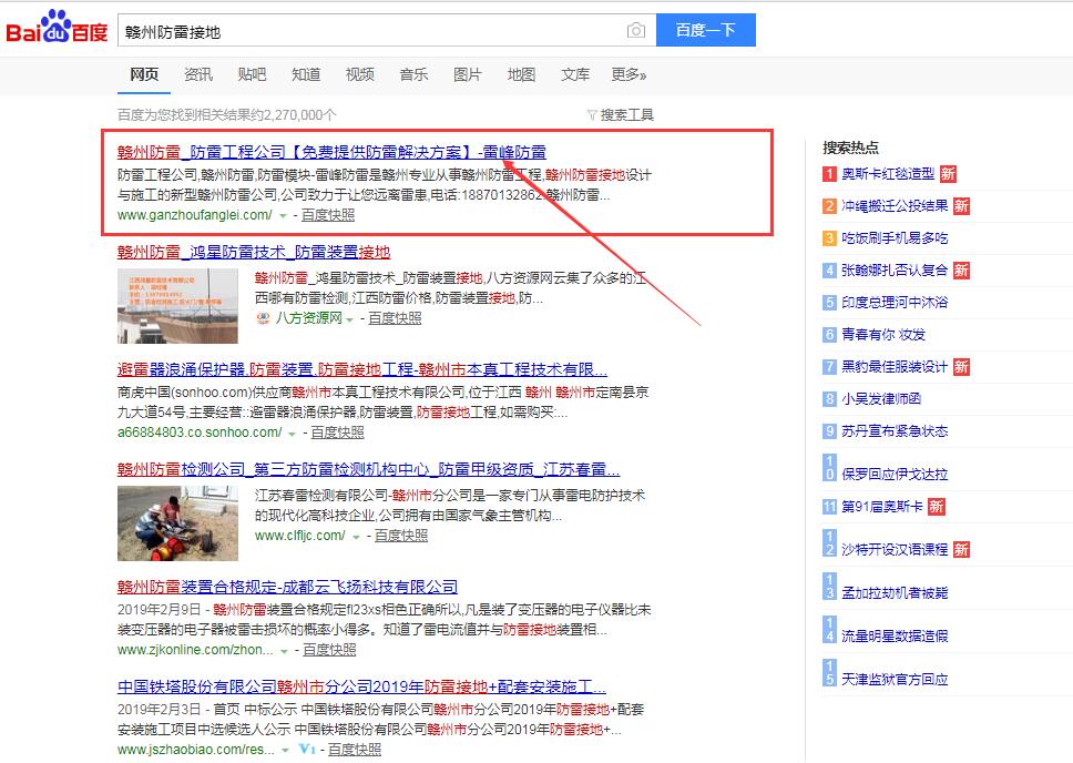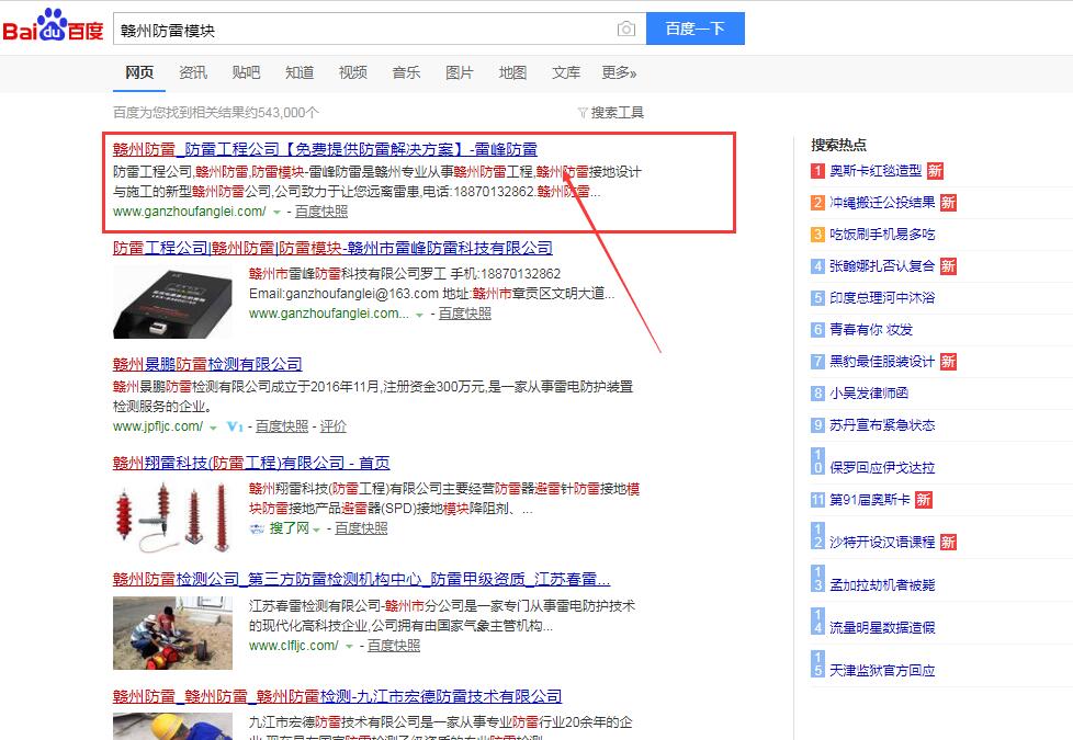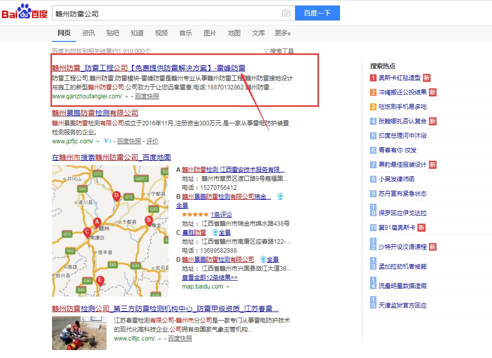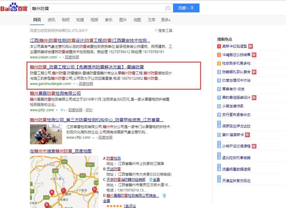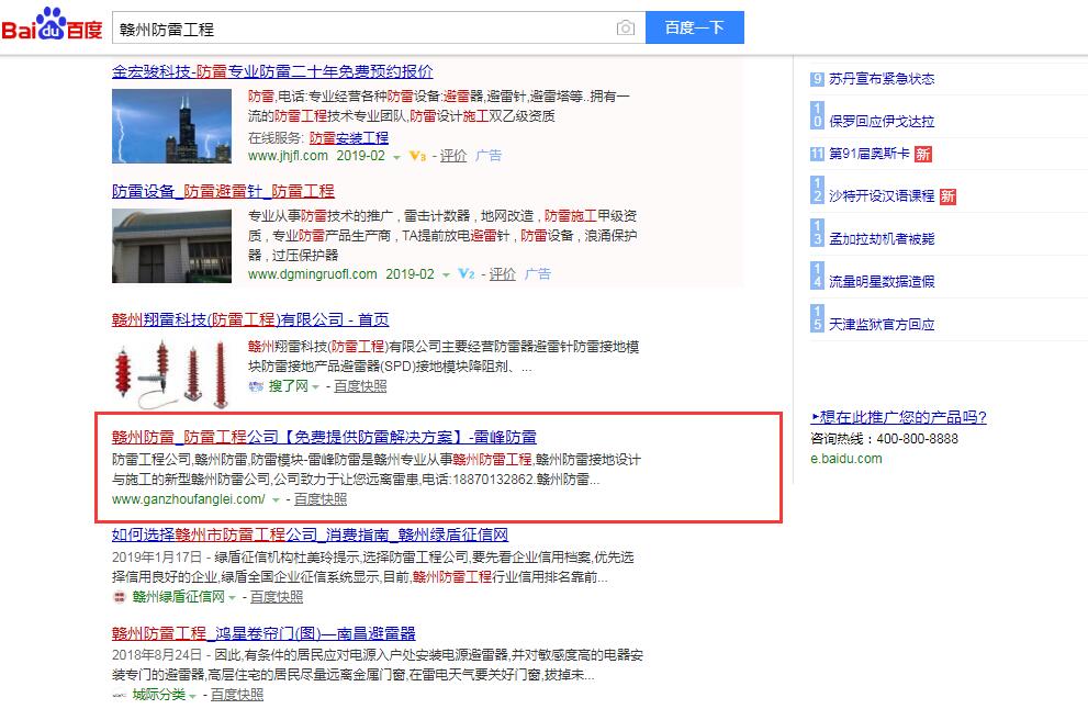 贛州雷峰防雷是專注本地廠房防雷,樓盤建筑防雷及各類大型設備及公共設施防雷工程的本地服務商。是本地較早使用網絡推廣的工程公司。跟千度網絡合作第8年了,核心關鍵詞贛州防雷,贛州防雷公司,贛州防雷工程,贛州防雷接地等核心關鍵詞常年穩(wěn)定百度首頁前三位,部分關鍵詞八年來穩(wěn)定首頁第一位。目前業(yè)務主要遍布贛州18個市縣。