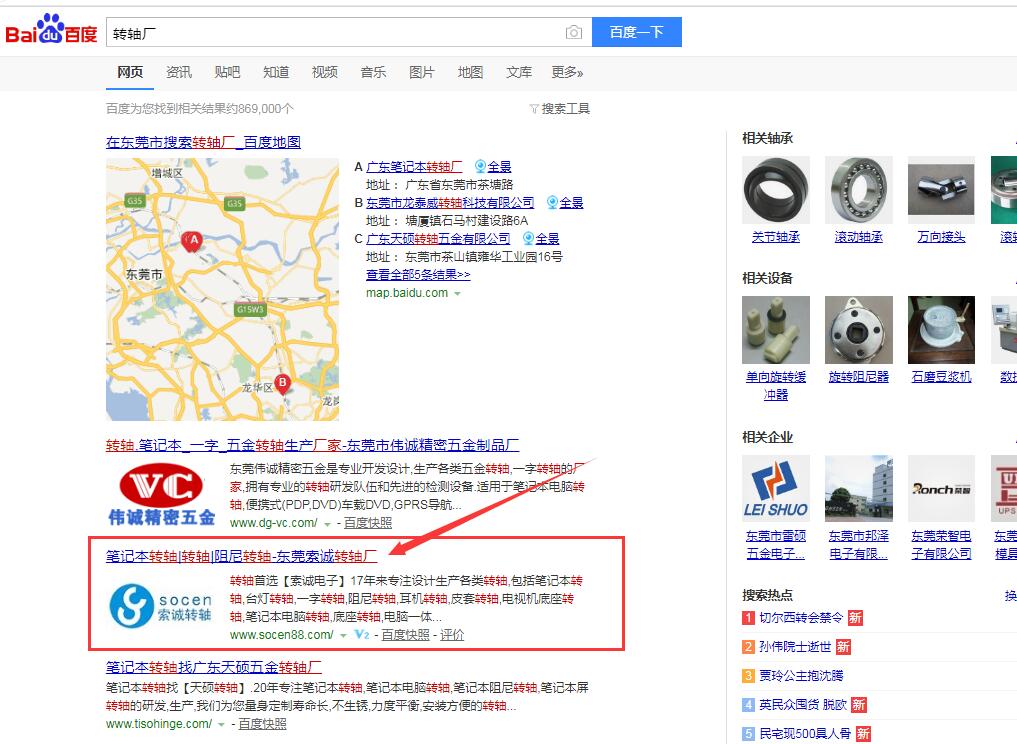 東莞seo案例-轉軸廠矩陣關鍵詞穩(wěn)定排名6年
