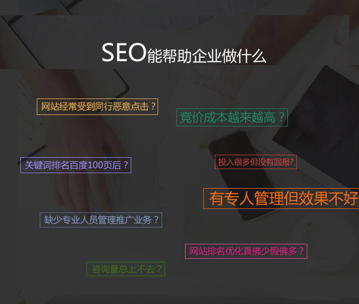答:這些只是按關(guān)鍵詞付費(fèi)的代碼和頁(yè)面優(yōu)化技術(shù),東莞seo優(yōu)化公司-千度科技SEO推出整站優(yōu)化,讓你的優(yōu)化不受關(guān)鍵詞限制,涵括客戶的各種搜索習(xí)慣。